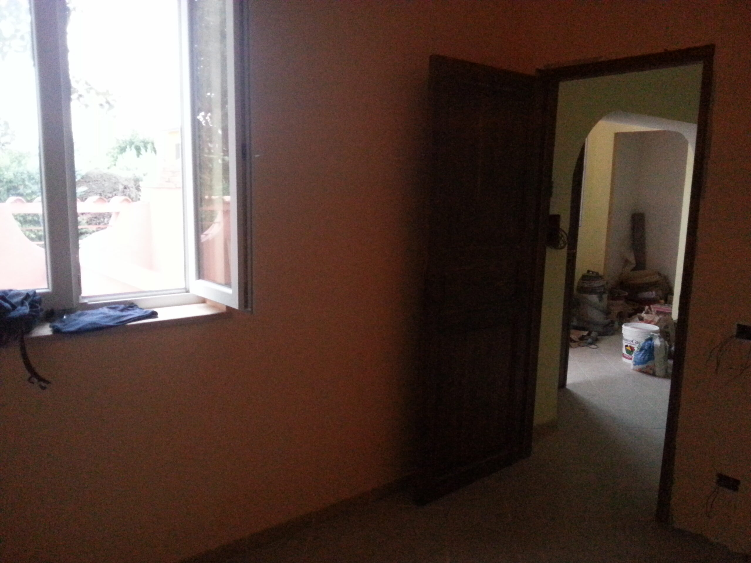 La camera padrona invece è molto luminosa e consente tramite la porta vetrata di accedere al giardino pavimentato, che accoglie al centro un rigoglioso albero di mele .