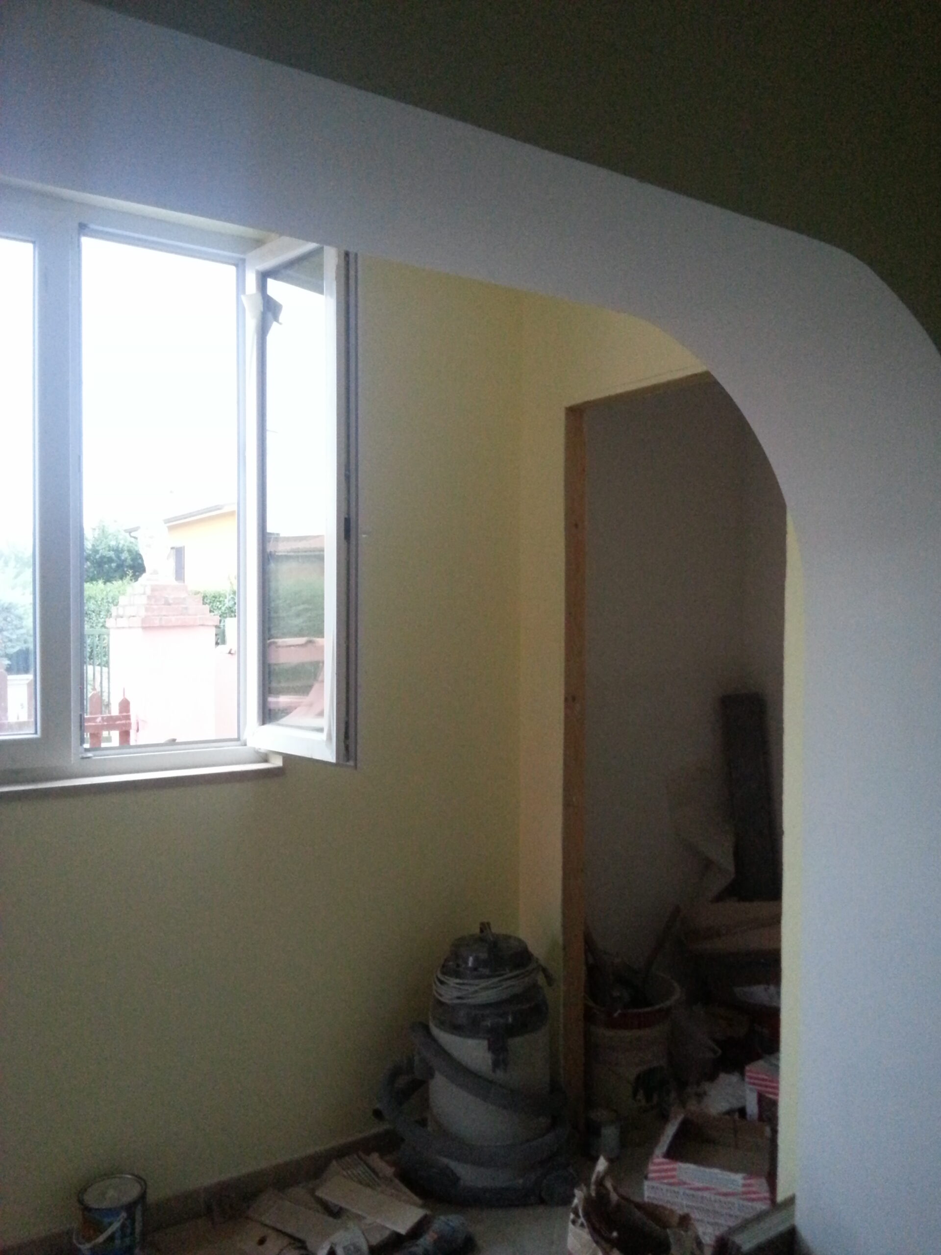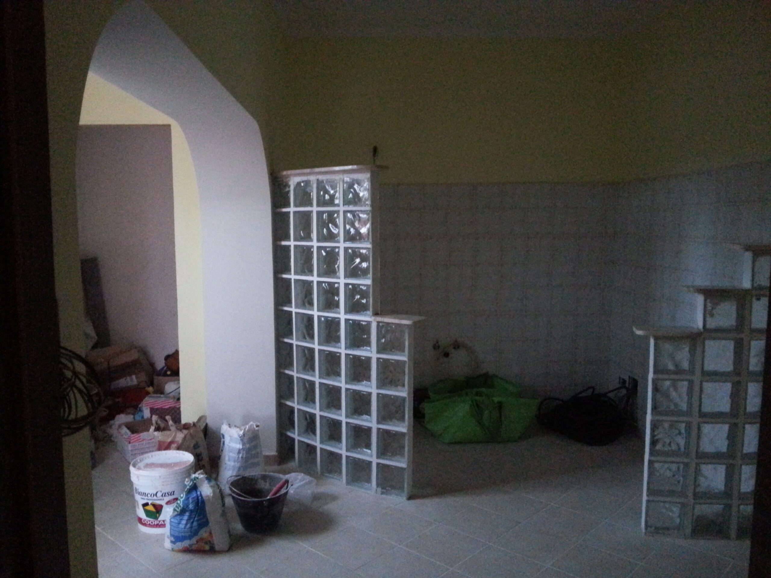 Dall’ingresso si accede ad un salotto spazioso con vista su una cucina semiabitabile, davvero caratteristica.